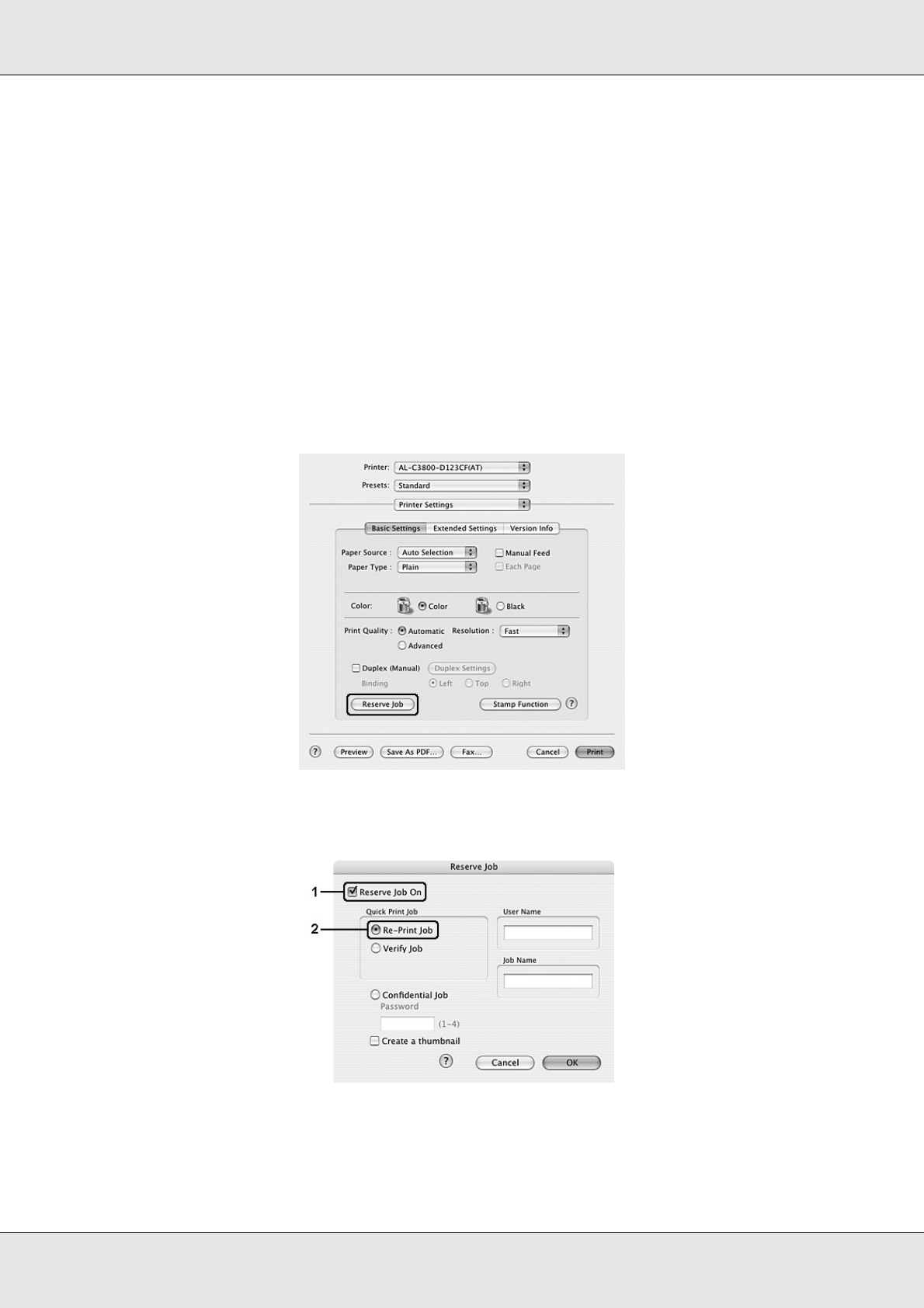 3. Select the Reserve Job On check box, then select Re-Print Job.