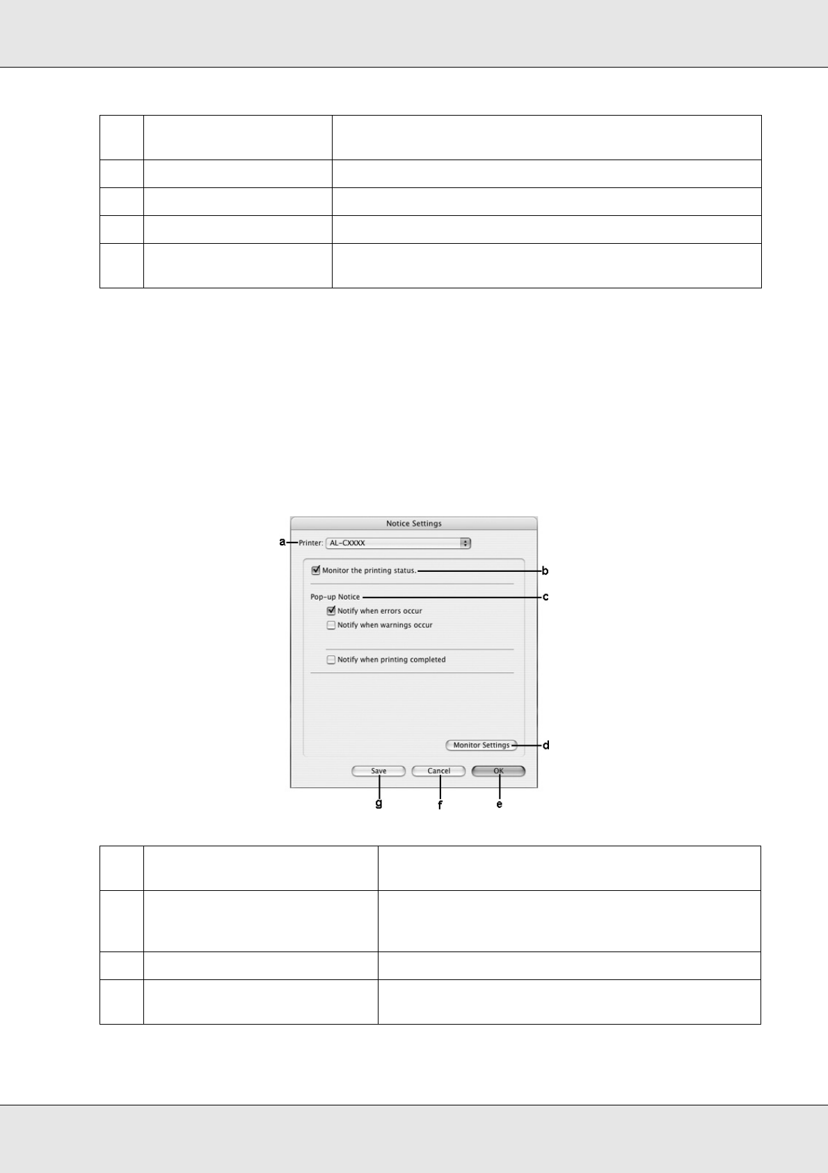 To make specific monitoring settings, access EPSON Status Monitor and select Notice