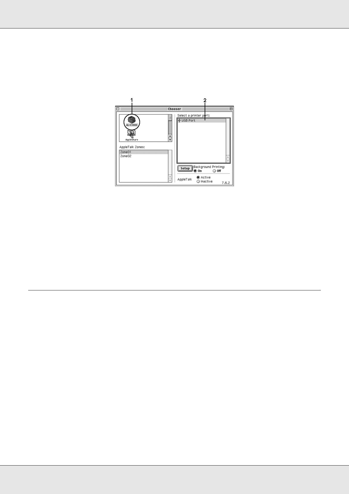 1. Select Chooser from the Apple menu. Click your printer’s icon, then click the USB port
