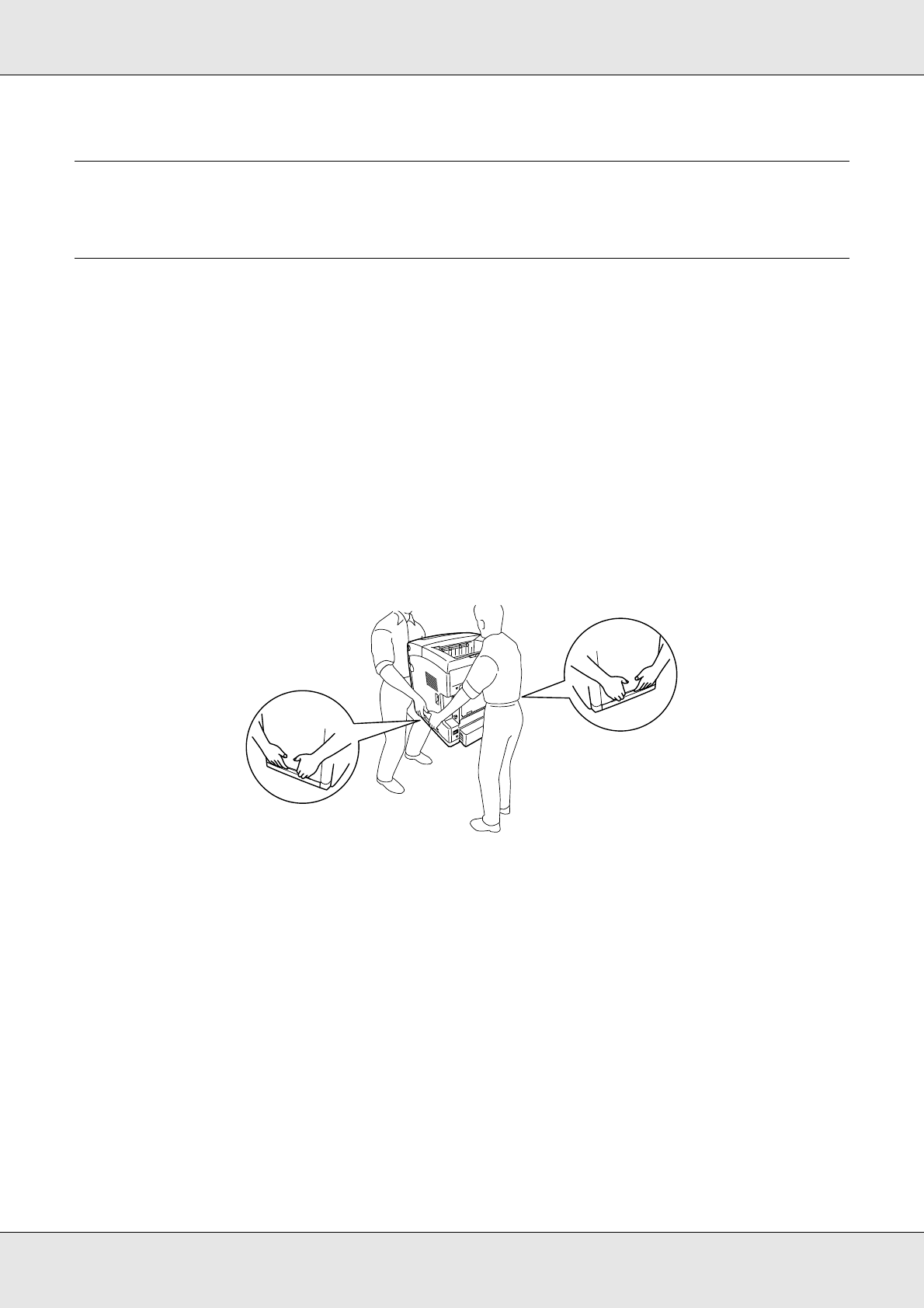 it alone. Two people should carry the printer, lifting it from the positions shown below.