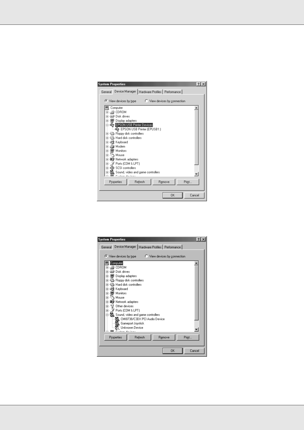 If your drivers are correctly installed, EPSON USB Printer Devices should appear on