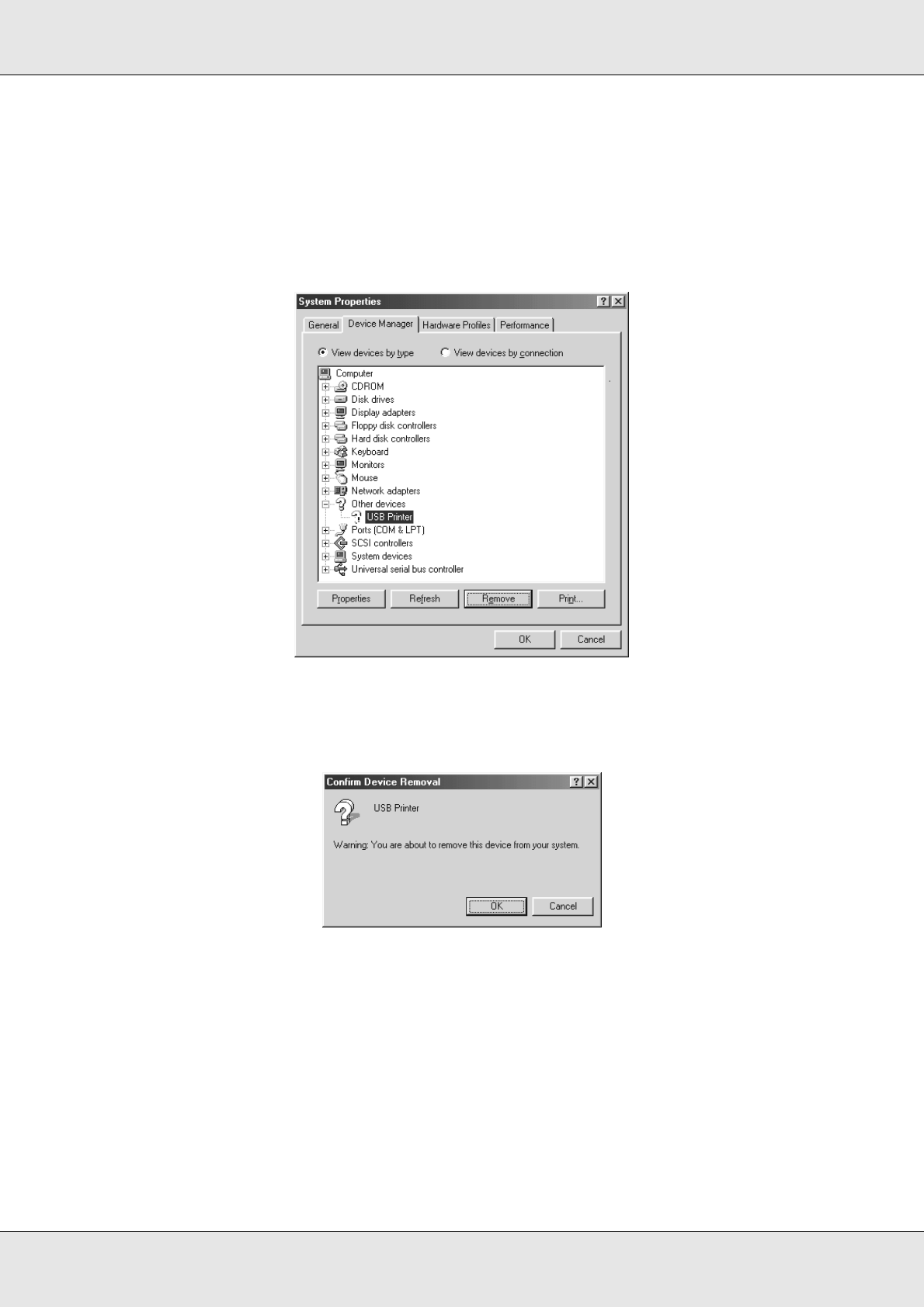 4. Under Other devices, select USB Printer or EPSON AL-CXXXX, click Remove, then