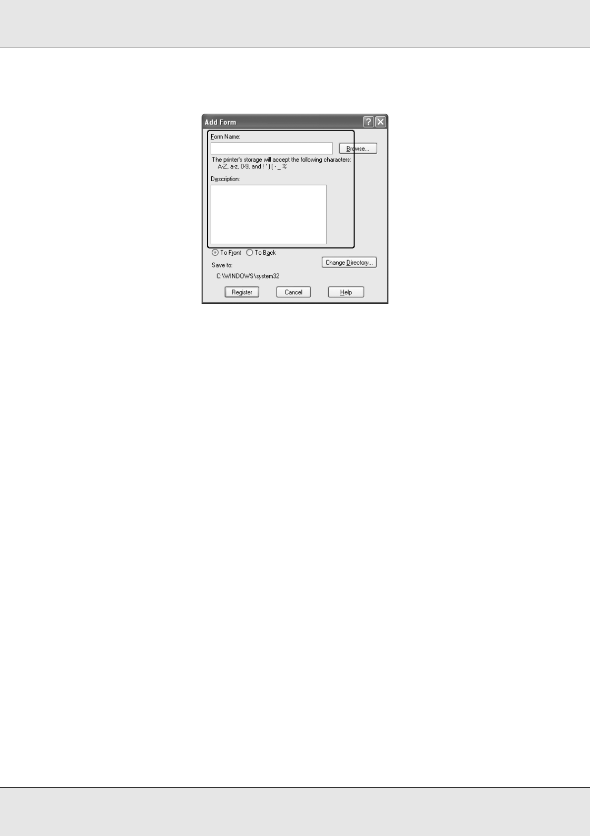 7. Type the form name in the Form Name box and its description in the Description box.