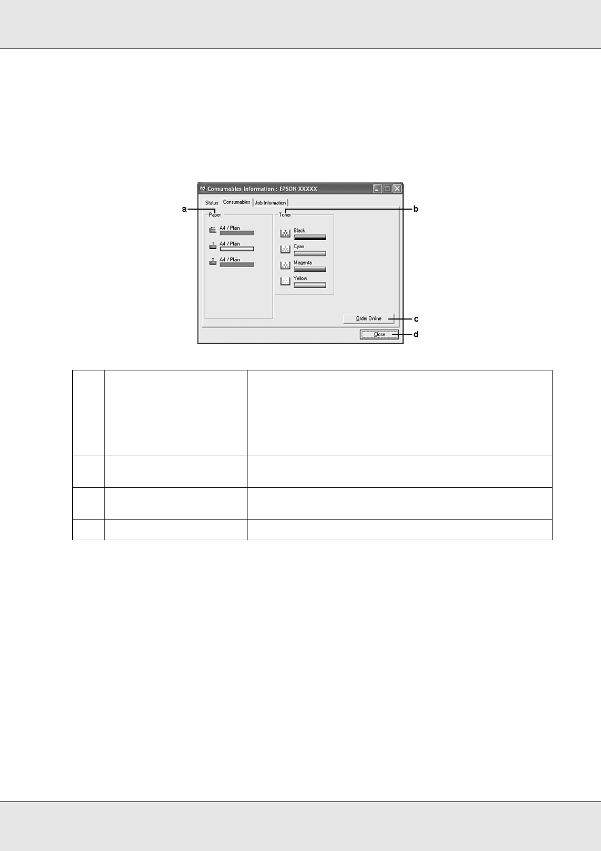 - Displaying information about consumables with the printer driver