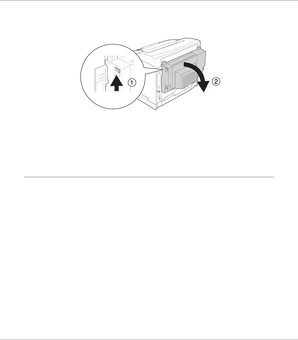 3. Press the unlock button to unlock the hooks, then remove the Duplex Unit from the printer.