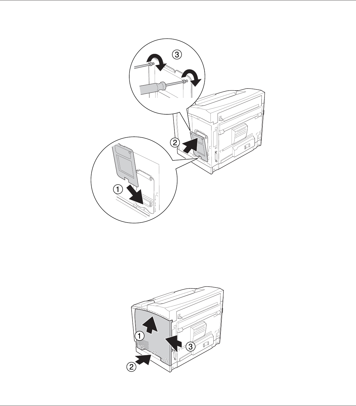 7. Reattach the right side cover to the printer as shown below.