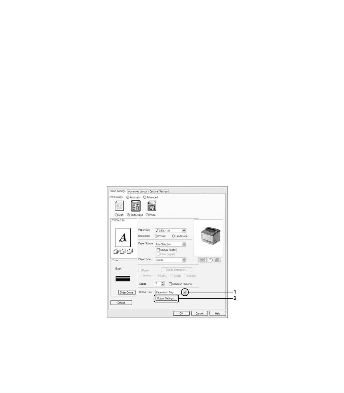 2. Select an output tray from the Output Tray drop-down list. If you want to make detailed settings,