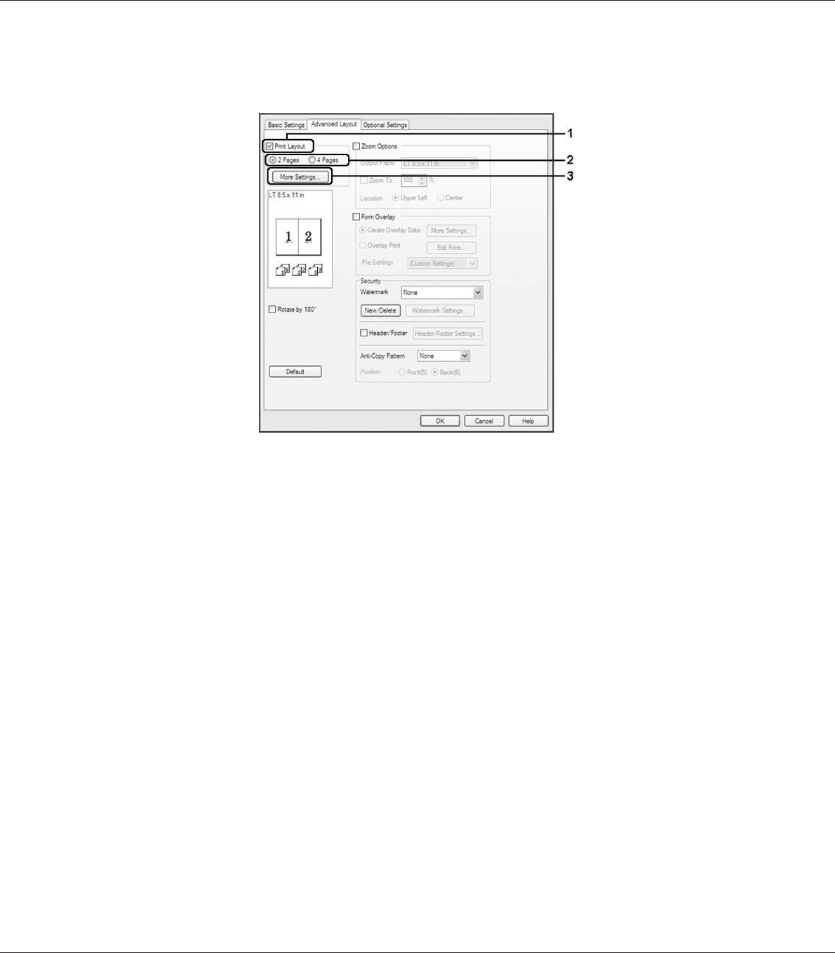 3. If you want to make detailed settings, click More Settings. The Print Layout Settings dialog box
