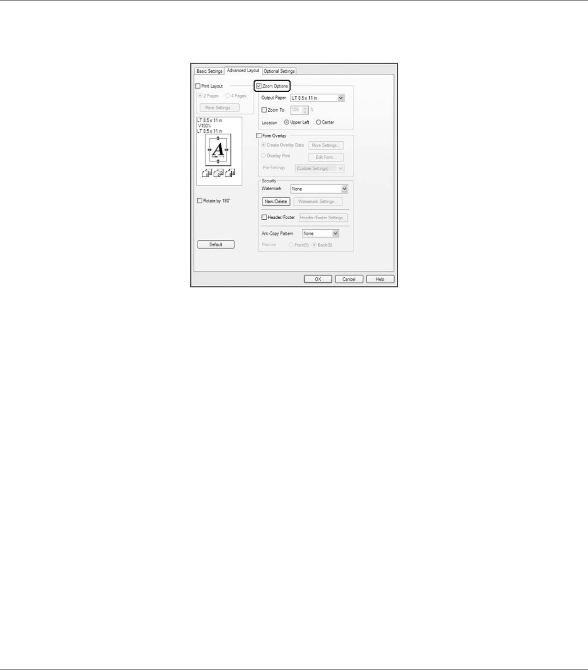 4. Select Upper Left (to print reduced page image at upper left corner of the paper) or Center (to