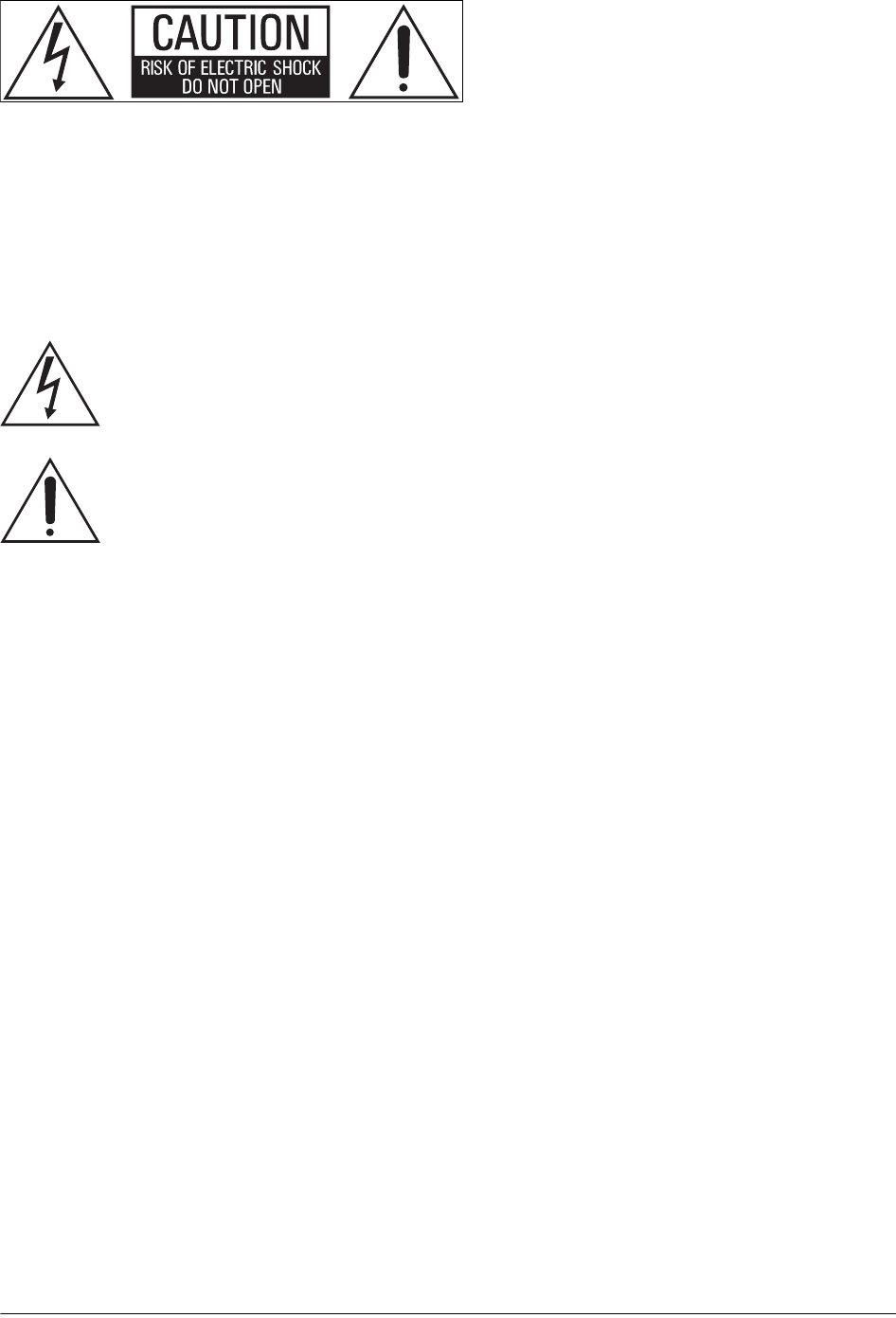 CAUTION: To reduce the risk of electric shock, do not remove the cover. No user serviceable parts inside. Refer