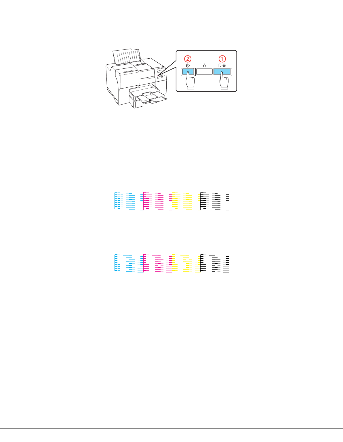 4. Hold down the ) Paper/Cancel button and press the P Power button to turn on the