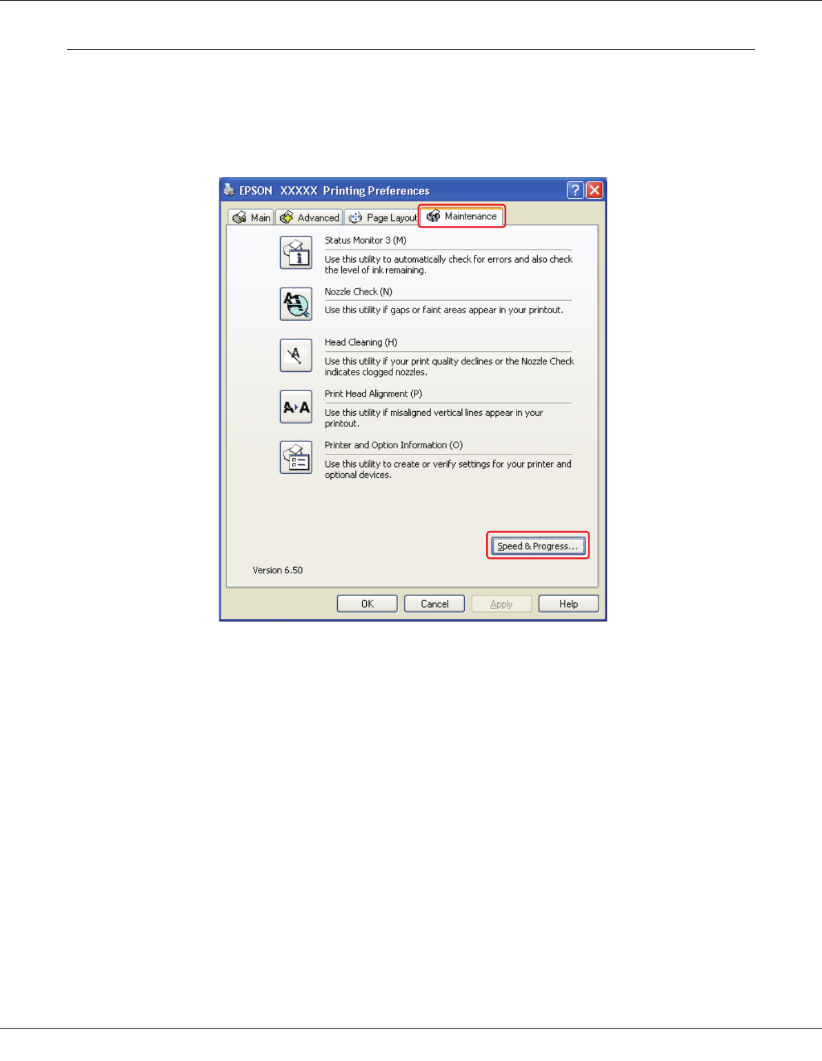 window. Click the Speed & Progress button on your printer driver’s Maintenance window.