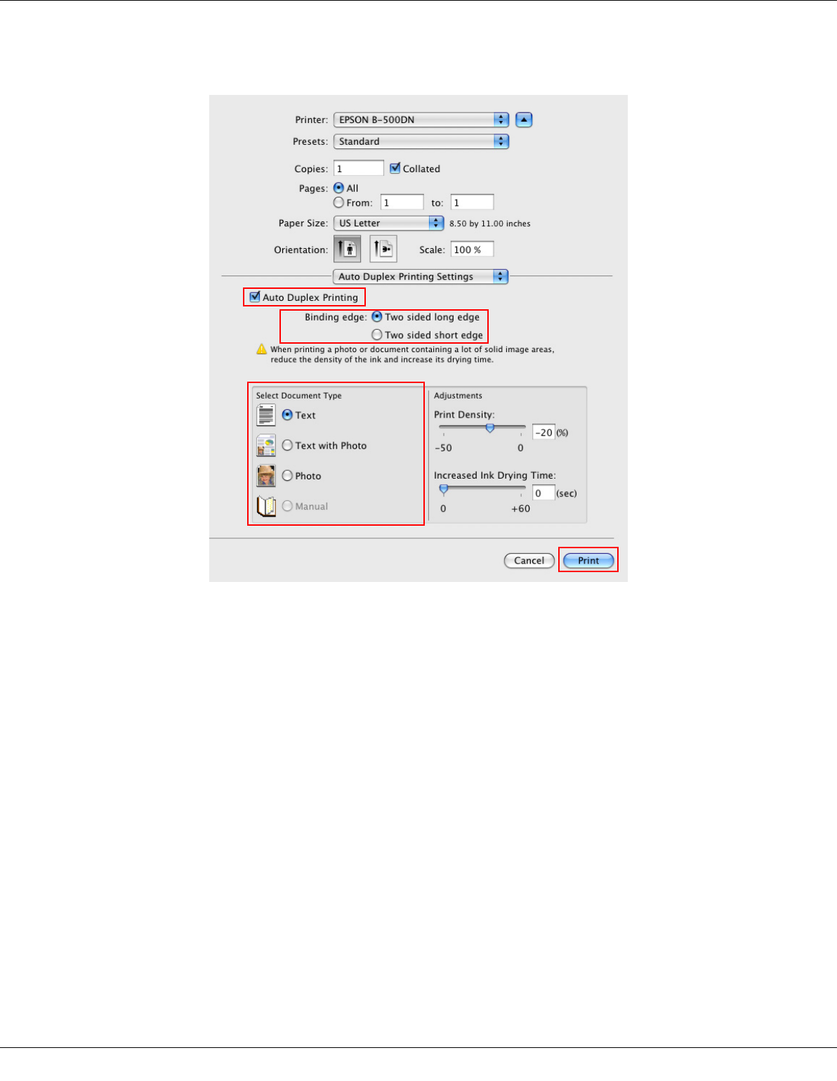 14.Select one of the Document Type settings. This automatically adjusts Print Density and