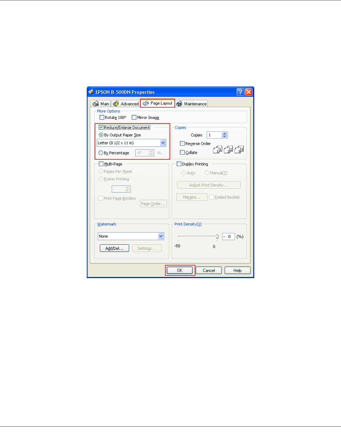 7. Click the Page Layout tab, then select the Reduce/Enlarge Document check box.