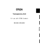 This transparency unit is a high-quality device developed to enable Epson Scanner owners to scan transparencies and slides. By installing this unit on your Epson scanner, you can scan transparencies and slides beautifully, in full color. Also, it is not necessary to remove this unit if you wish to return to scanning normal reflective (paper) documents. Unpacking the Unit When you first open the package, make sure that all the following items are included and that none has been damaged during shipping.