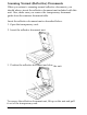 Scanning Normal (Reflective) Documents When you return to scanning normal reflective documents, you should always insert the reflective document mat included with this unit. Also, make sure you remove the transparency document guide from the scanners document table. Insert the reflective document mat as described below. 1. Open the transparency unit. 2. Insert the reflective document mat. 3. Position the reflective document and close the unit.
