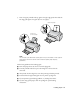 Lights Explanation Red paper and ink lights flash alternately Paper may be blocking movement of the print head. Turn off the printer, then open the cover and remove any jammed paper or other foreign objects. Turn the printer back on. If the lights are still on, contact Epson as described on page 32. Green power light is off; red paper and ink lights flash The printer may have an internal error. Turn off the printer, wait a few seconds, and turn it on again.
