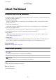 User's Guide About This Manual About This Manual Introduction to the Manuals The following manuals are supplied with your Epson printer. As well as the manuals, see the help included in the various Epson software applications. ❏ Start Here (paper manual) Provides you with information on setting up the printer, installing the software, using the printer, solving problems, and so on. ❏ User's Guide (digital manual) This manual.