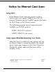 Notice for Ethernet Card Users Using OS/2 If the Ethernet Cards firmware version is 4.00 or below, it does not support NetBIOS over TCP/IP protocol. Therefore use the NetBEUI protocol provided by OS/2 Warp or OS/2 Warp Connect.