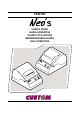A1 TECHNICAL TECNICAL SPECIFICATION SPECIFICATION TECHNICAL SPECIFICATIONS Neo's-S Neo's-P Neo's-U Standard interfaces RS232 serial CENTRONICS USB Baud rate From 1200 to 57600 bps None None Resolution 204 DPI (8 dot/mm) Paper specifications Type of paper Recommended types of paper Thermal rolls Heat-sensitive side on outside of roll KF50 (58g/m 2 ± 5gm 2) KANZAN or Equivalent Paper thickness 0,063 ± 0,005 mm (KF50) Paper roll size 60 mm ± 0,5 mm External roll diameter max.