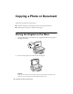 Copying a Photo or Document Follow the instructions in this section to: ■ Position your photo or document correctly on the glass (see below) ■ Make copies of a photo or document (see page 9) Placing the Original on the Glass 1. Open the document cover and place your original face-down on the glass, in the upper left corner. 2. Close the cover gently so you don’t move the original.
