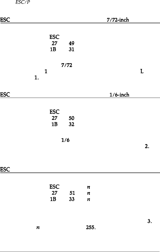 Sets the line spacing to 7/72 of an inch for subsequent line feed
