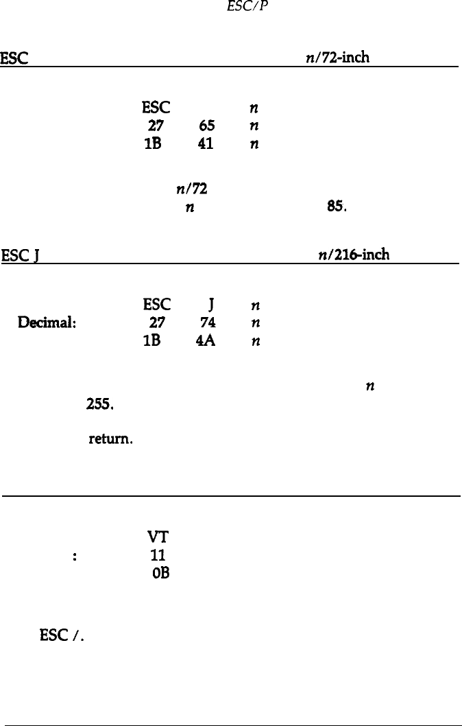 Sets the line spacing to n/72 of an inch for subsequent line feed