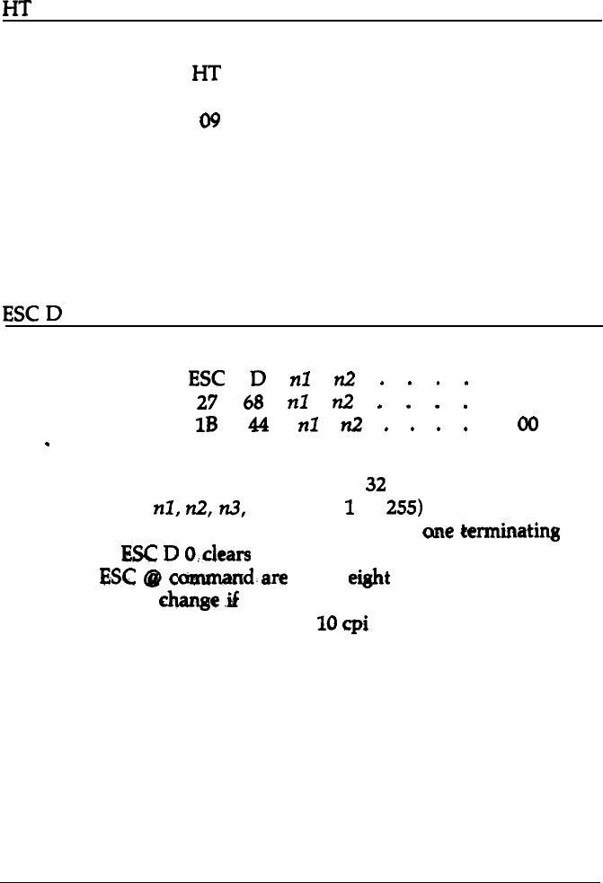 Advances the print position to the next horizontal tab setting.