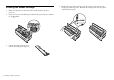Installing the Ribbon Cartridge 1. Make sure the printer is turned off. (The switch should be in the O position.) 2. Open the top cover and slide the print head to the position shown, marked by the symbol. 3. Unpack the ribbon cartridge and remove the black plastic separator. 4 Installing the Ribbon Cartridge 4. Holding the sides of the cartridge, place the notch on each end onto the metal posts inside the printer. Then tilt the cartridge down into the printer until it clicks into place.
