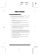 Maple Rev.D A5 size 06/17/97 Chapter 2 pass 0 R Accessing the printer utilities To access the EPSON utilities, follow these steps: 1. From the DOS prompt, make sure the current directory is drive C. 2. To access the EPSON Remote! utility, type PRNSET, and press Enter. To access the EPSON Label Form utility, type EPUTIL\EPLABEL, and press Enter. 3. Follow the on-screen instructions to use the utilities.