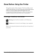 Read Before Using the Printer This guide consists of three chapters. The first and the second chapters describe how to set up your printer and install the printer software. The last chapter provides detailed safety and environmental information. Be sure to follow the instructions carefully to ensure safe and efficient use of your printer. Warnings, Cautions, and Notes w c Warnings must be followed carefully to avoid bodily injury. Cautions must be observed to avoid damage to your equipment.