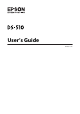 DS-510 User’s Guide Copyright and Trademarks Copyright and Trademarks No part of this publication may be reproduced, stored in a retrieval system, or transmitted in any form or by any means, electronic, mechanical, photocopying, recording, or otherwise, without the prior written permission of Seiko Epson Corporation. No patent liability is assumed with respect to the use of the information contained herein.