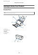 DS-510 User’s Guide Placing Originals on the Product A Open and extend the input tray, and then slide out the output tray and raise and extend the central guide. B Slide the edge guides on the input tray all the way out. C Raise the page separation lever.