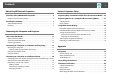 Contents 2 About EasyMP Network Projection Various Projection Styles Functions of EasyMP Network Projection . . . . . . . . . . . . . . . . . . . . . . . 5 Projecting Only a PowerPoint Slide Show (Presentation Mode) . . 26 Various Screen Transfer Functions . . . . . . . . . . . . . . . . . . . . . . . . . . . . . . . . . . . . . . . 5 Projecting Movies on a Computer (Movie Sending Mode) . . . . . . . 27 Installing the Software . . . . . . . . . . . . . . . . . . . . . . . . . . . . . . . . . . . . .