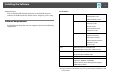 Troubleshooting 50 The mouse pointer flickers. Check Is Make the movement of the mouse pointer smooth selected? Is Transfer layered window selected? Remedy Do one of the following to stop the mouse pointer from flickering on the screen. • Select Make the movement of the mouse pointer smooth. s "General settings tab" p.39 • Clear the Transfer layered window check box. s "Adjust performance tab" p.41 When connecting with EasyMP Network Projection the image is not displayed or the image is slow to appear.