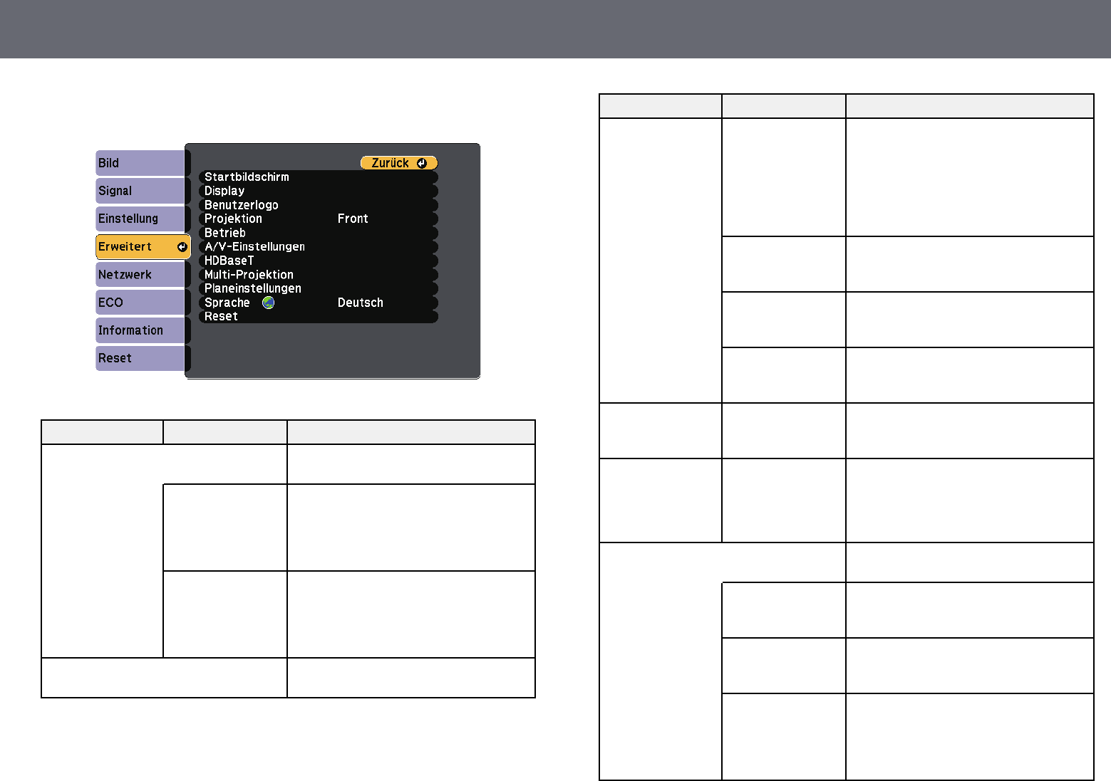 - Projektoreinrichtungseinstellungen - Erweitert-Menü