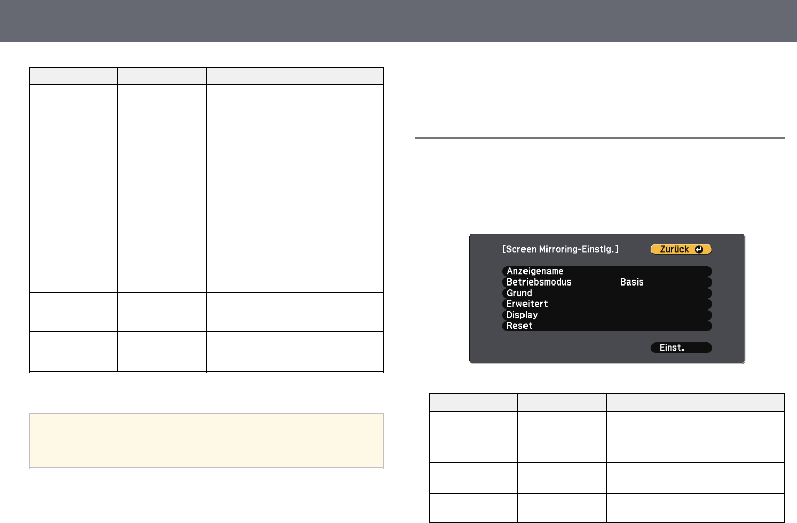 - Projektornetzwerkeinstellungen - Netzwerk-Menü
