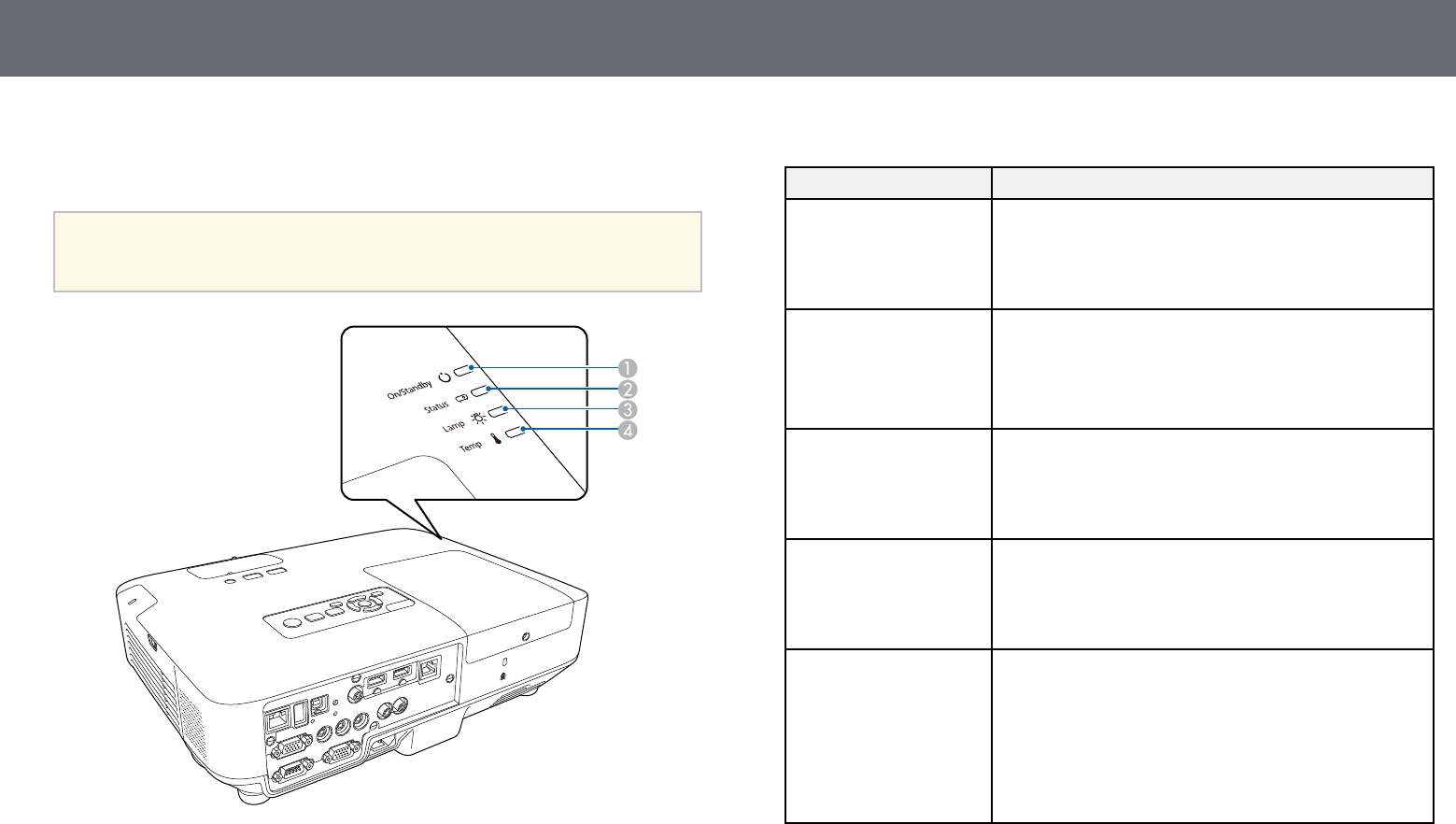 Die Anzeigen am Projektor zeigen den Projektorstatus und informieren Sie,