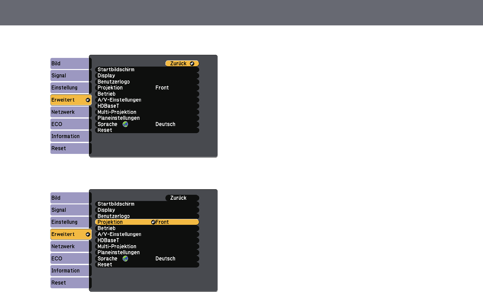 - Projektoreinrichtungseinstellungen - Erweitert-Menü