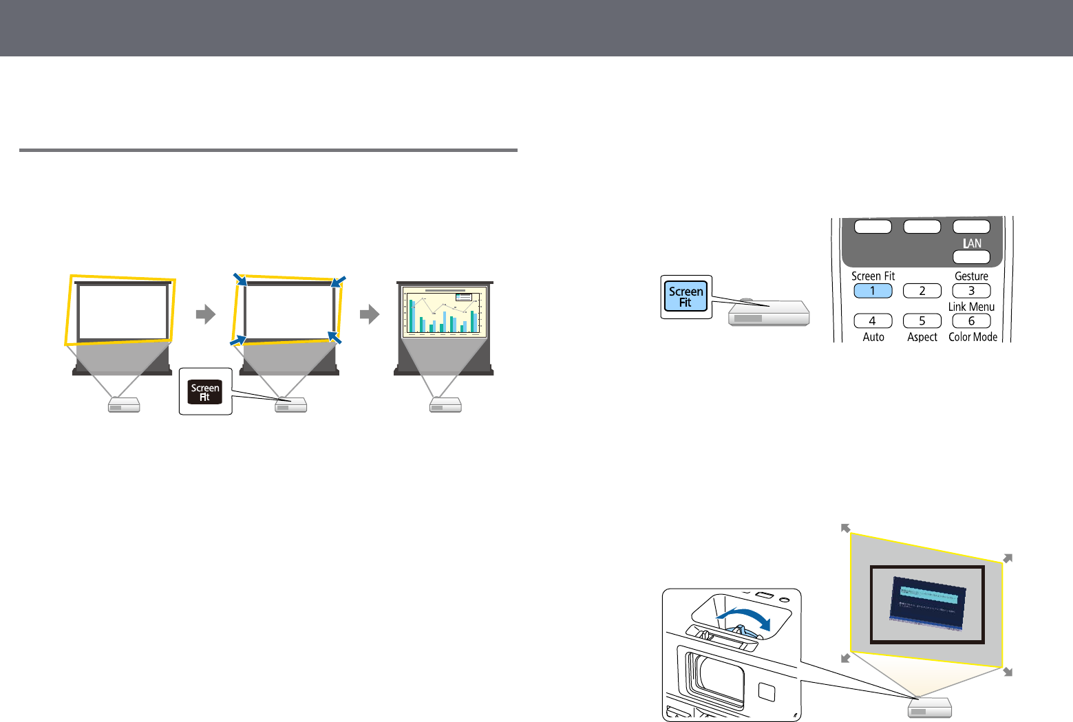 Mit der Screen Fit-Funktion des Projektors können Sie Form und Position