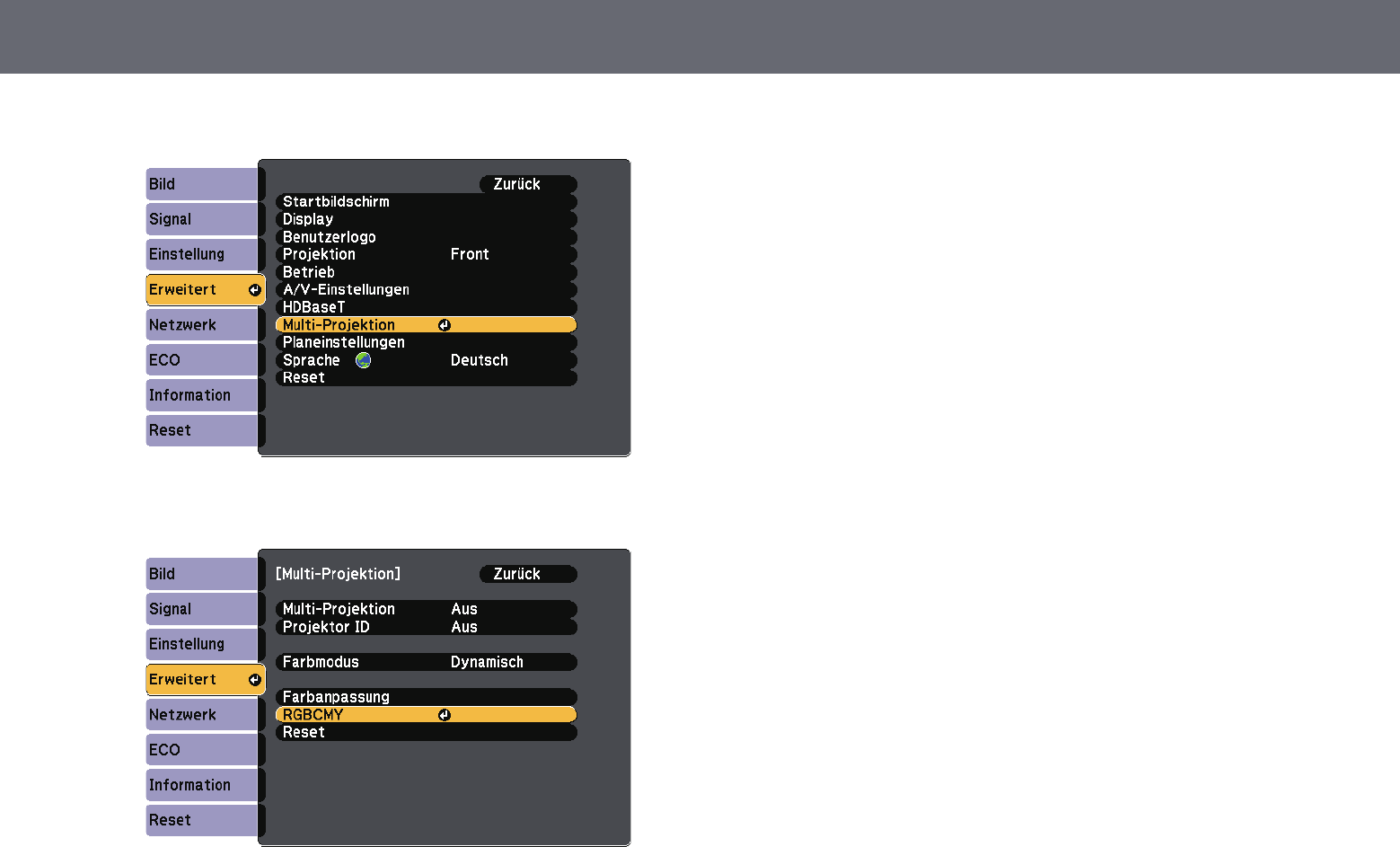 - Kopieren von Menüeinstellungen zwischen Projektoren (Sammeleinrichtung)