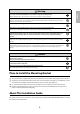 1 Package Contents s Page 5 2 Specifications s Page 6 3 Connecting Devices s Page 7 4 Projection Distance Table s Page 8 5 Installation Procedure (1) (2) (3) (4) (5) s Page 10 Install the wall plate on the wall Determine the projection distance and pull out the slider Attach the mounting bracket to the wall plate Secure the projector to the mounting bracket Connect the power cable and other cables to the projector 6 Adjusting the Projection Screen (1) (2) (3) (4) (5) (6) (7) (8) (9) (10) s P