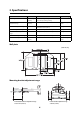 2. Specifications Item Specification Remark Reference Page Mounting bracket mass Approx. 6.3 kg (13.89 lb.) Wall plate (2.2 kg [4.85 lb.]) Covers and cap (0.47 kg [1.04 lb.]) Forward/backward slide adjustment range 0 to 300 mm (11.81 in.) Vertical slide adjustment range ± 4° Minimum: 28 mm (1.10 in.) Maximum: 42.5 mm (1.67 in.) s p. 17 Vertical tilt adjustment range ± 5° Fine adjustments possible with adjustment dial s p.
