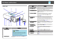 Part Names and Functions Name 11 Function L USB indicator (EB-826W/825/824/85 only) The following explains the status of USB devices connected to USB port. (TypeA). OFF: USB device is not connected Orange Light ON: USB device is connected Green Light ON: USB device is operating Red Light ON: Error M USB Port (TypeA) (EB-826W/825/824/85 only) Projects a JPEG image Slideshow when memories or digital cameras are connected to the USB compatible port.