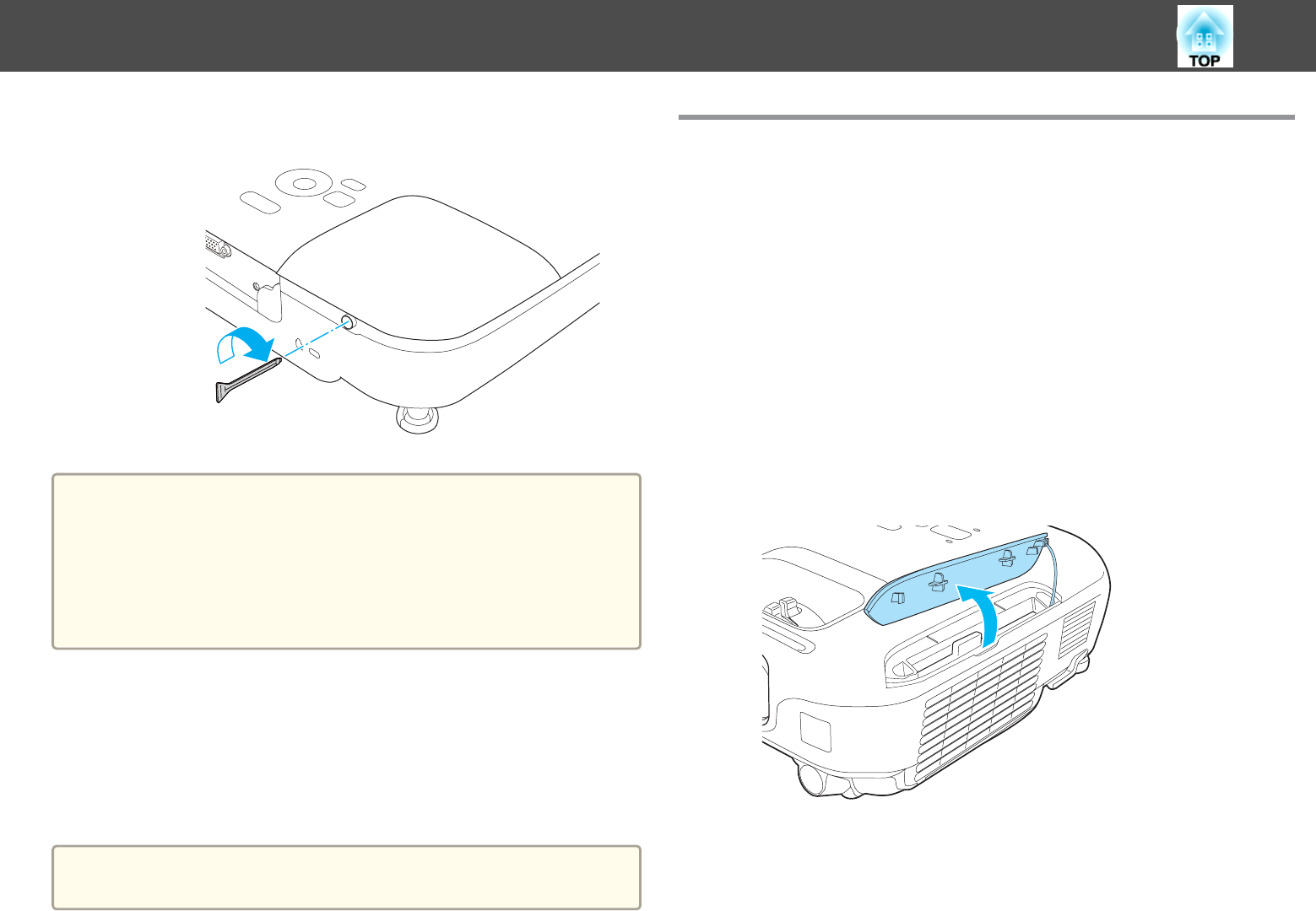 • Make sure you install the lamp securely. If the lamp cover is removed, the