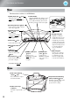 Part Names and Functions Front / Top • Remote control light-receiving area • Control panel (side) p.13 Receives signals from the remote control. See below • Air inlet (air filter) • Lamp cover p.65, 69 This draws in air for cooling the inside of the projector. If dust collects on the filter, the temperature inside the projector will rise and problems with operation or more rapid deterioration of the optical components may occur. The air filter should be cleaned periodically.