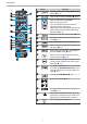 Introduction Button Function j Performs the function assigned to the user button. s p.79 k Saves, loads, or erases a memory. s p.43 l (Only available for EH-TW6600W) WiHD Transmitter control Turns on the WirelessHD Transmitter, or switches the input and output. Make sure you point the remote control at the WirelessHD Transmitter when performing operations. s p.62 m Displays and closes the test pattern. s p.27 n Temporarily hides or shows the image and audio. s p.31 o Changes between 2D and 3D.