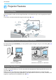 Preparing Installing Various Projection Methods Warning • A special method of installation is required when suspending the projector from a ceiling (ceiling mount). If it is not installed correctly, it could fall causing an accident and injury. • If you use adhesives, lubricants, or oil on the ceiling mount fixing points to prevent screws from loosening, or if you use things such as lubricants or oils on the projector, the projector case may crack causing it to fall from its ceiling mount.