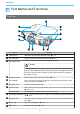 Introduction Buttons/Indicators Function j Changes to the image from each input port. s p.26 k Turns the projector power on or off. s p.25 Lit when the projector is on. Shows the projector's errors through a combina‐ tion of other indicators lit and flashing. s p.