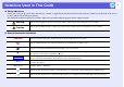 Using the Help 33 If a problem occurs with the projector, Help uses on-screen displays to assist you in solving the problem. C Confirm the selection. Using the remote control Using the control panel Procedure A Press the [Help] button. The help screen is displayed. Using the remote control Using the control panel Questions and solutions are displayed as shown on the screen below. Press the [Help] button to exit Help. B Select a menu item.